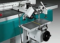 Для образования угла между кромкой и пластью заготовки используется направляющая линейка, которая наклоняется в фуговальных станках PF 41 -PF 53 на угол 0-45 градусов. Для обеспечения безопасности в работе станки оснащены защитным устройством вала фуганка, которое автоматически открывается при проходе заготовки и также закрывается после завершения рабочих процессов.