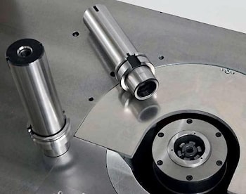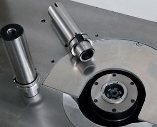 Каждый элемент станка, как часть одного целого, отвечает за свой участок работы. Немаловажной деталью в любом станке является рабочий стол, который во фрезерном станке Griggio Т 45 HSK 63E оснащен подвижным сектором вместо колец. Шпиндель станка имеет моторизированный наклон и подъем. Данные параметры фиксирует индикатор, чтобы не ошибиться с выставлением нужного угла.
