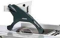 Алюминиевая каретка | с цилиндрическими направляющими из стали высокой точности, на роликах | Каретка | из анодированных профилей | 5 упоров быстрого позиционирования флажков на телескопической направляющей | + | Защитное устройство пилы |  | Кнопка аварийного останова и теплозащита | + | Прямой запуск | + | Подъем пилы | с помощью маховика | Механический визуализатор угла наклона пилы | + | Ручная регулировка 2-осевого подрезного узла | +