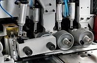 На каждом шпинделе установлен высокоточный подшипник. Шпиндели работают от двух двигателей: первых три шпинделя - от мотора мощностью 7,5 лс, последний шпиндель - от мотора в 10 лс. Подающие ролики оснащены пневматическими прижимами для улучшенной фиксации заготовок. Плавность передачи крутящего момента обеспечивается приводом подающих роликов через безлюфтовый червячный редуктор по средством карданной передачи. Подъем траверсы системы подачи осуществляется автоматическим путем.