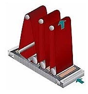 Первая лента работает от одного мотора, т.к. испытывает наибольшую нагрузку. Работа двух других лент контролируется вторым мотором, мощность которого позволяет выдерживать большие нагрузки. Заготовки обрабатываются шлифовальными лентами со скоростью 18 метров в минуту и подаются по транспортному ковру, имеющему автоматическую центровку. Подающий транспортер имеет скорость 4-20 метров в минуту в зависимости от обрабатываемого материала. Мощность моторедуктора подачи составляет 1,5 лс. Размер шлифовальных лент равен 2150 x 1120 мм.