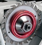 | Подрезной узел с двойной пилой - регулировка расстояния между 2-мя пилами с увеличением до 0,05 мм без использования ключей