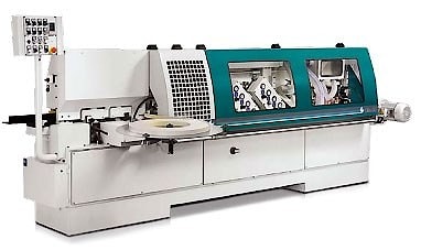 Станок оснащен большой клеевой ванной, вместительностью 4 л, с электрическим контролем температуры и системой автоматического ее снижения, поддерживающим суппортом для особо крупных заготовок, автоматическим погрузчиком полосовой кромки и рулонодержателем кромки. Разработанная по новейшим технологиям зона прижима, состоящая из трех роликов с визуализатором, обеспечивает получение качественного, почти невидимого клеевого шва. Подача заготовок осуществляется автоматически, со скоростью 12 и 16 метров в минуту, что положительно сказывается на продуктивности производства.